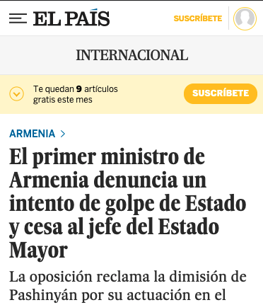 Vamos a observar la sección de cabecera en el móvil. La gran mayoría de los usuarios visitan los sitios web de noticias a través de sus dispositivos móviles, por lo que la experiencia móvil es tan importante o más que la experiencia de escritorio.