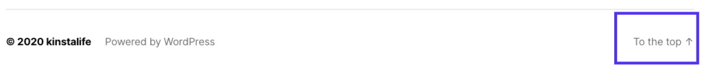 En el pie de página, no hay enlaces de navegación interna, únicamente un simple enlace de “volver arriba” que te lleva de vuelta a la parte superior de la página.