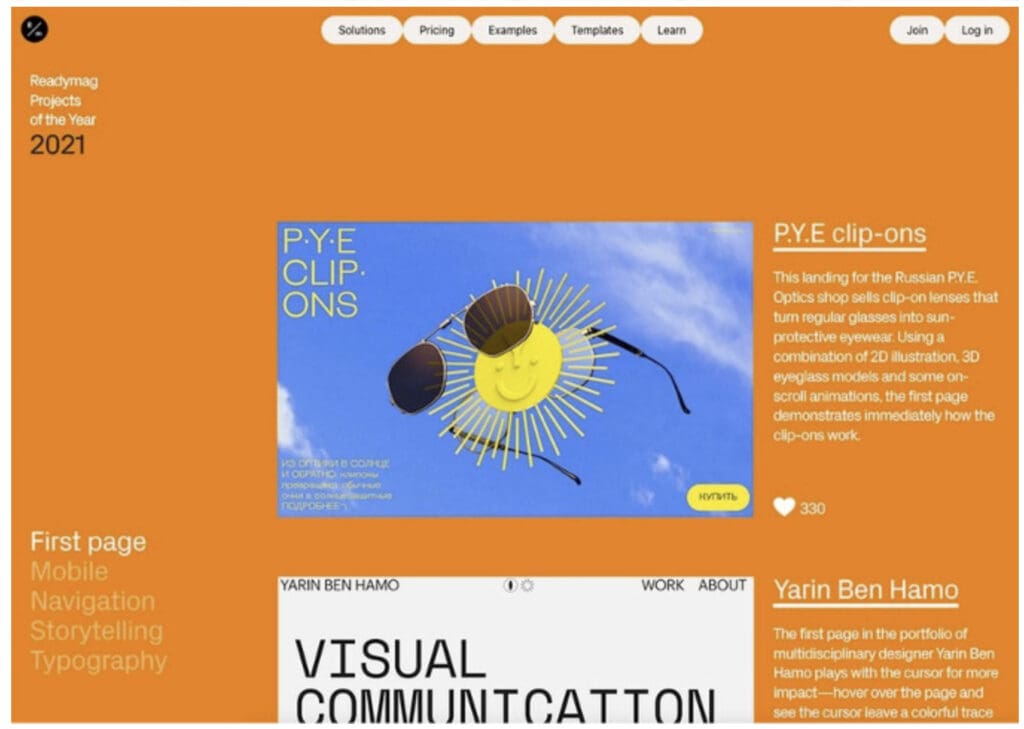 Con reminiscencias retro, se podría pensar que el sitio web de Readymag llega directamente desde los años 90. Las sutiles animaciones recuerdan al usuario que se trata de una elección de diseño moderna. Los botones de navegación grises y planos llaman la atención por su sencillez.