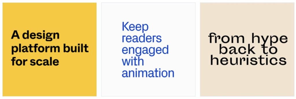 • Tipografías modernas: Aunque el brutalismo suele optar por tipografías poco comunes, estiradas o enrevesadas, el nuevo brutalismo suele seguir las reglas modernas de las tipografías para facilitar la lectura. Colores y fondos extraños se unen a un texto legible y geométrico.