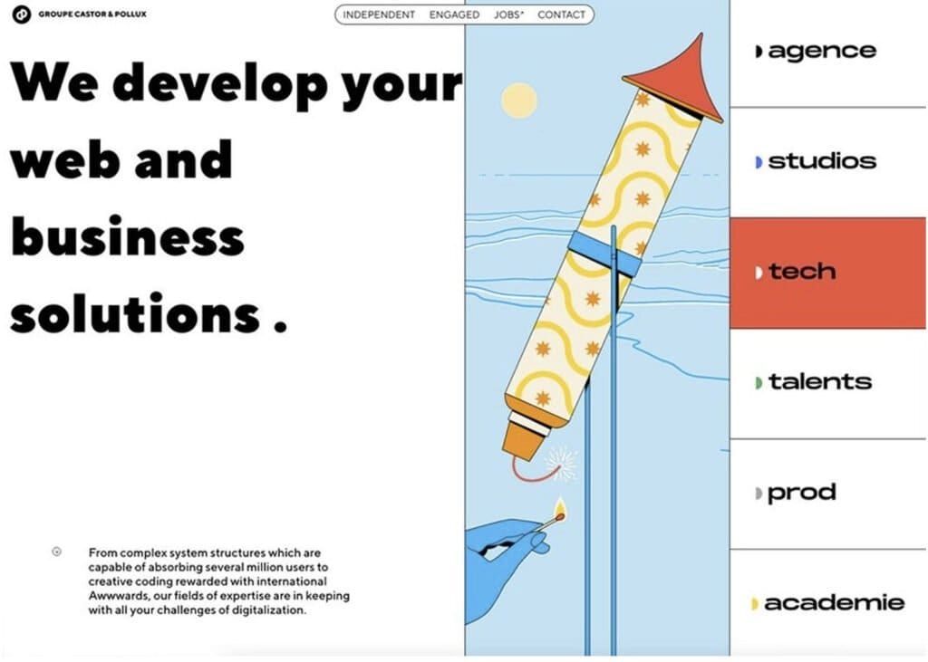 A medida que recorras los ejemplos de sitios web que se listan a continuación, seguro que te llamará la atención las tipografías utilizadas en los títulos: casi todos utilizan fuentes extravagantes y grotescas. Suelen ir un poco más allá de lo que definiríamos como grotesco, adentrándose en el mundo de las fuentes publicitarias o para grandes formatos, pero se defina como se defina, son impactantes.