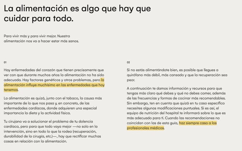 La Guía de Cirugía Cardíaca es un ejemplo evidente de nuevo brutalismo. Su llamativa simplicidad se combina con toques más modernos, como por ejemplo el efecto del cursor al desplazarse por el contenido o el giro del logotipo.