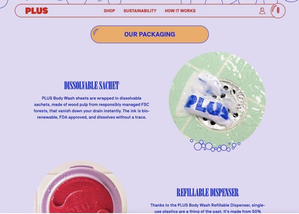 ¿Lila y naranja? ¿amarillo y azul? Pues sí, estas son algunas de las atrevidas combinaciones de colores de las que hace uso el sitio de Plus para lograr un aspecto neobrutalista. Las animaciones y los cursores casi convierten la navegación en un juego.
