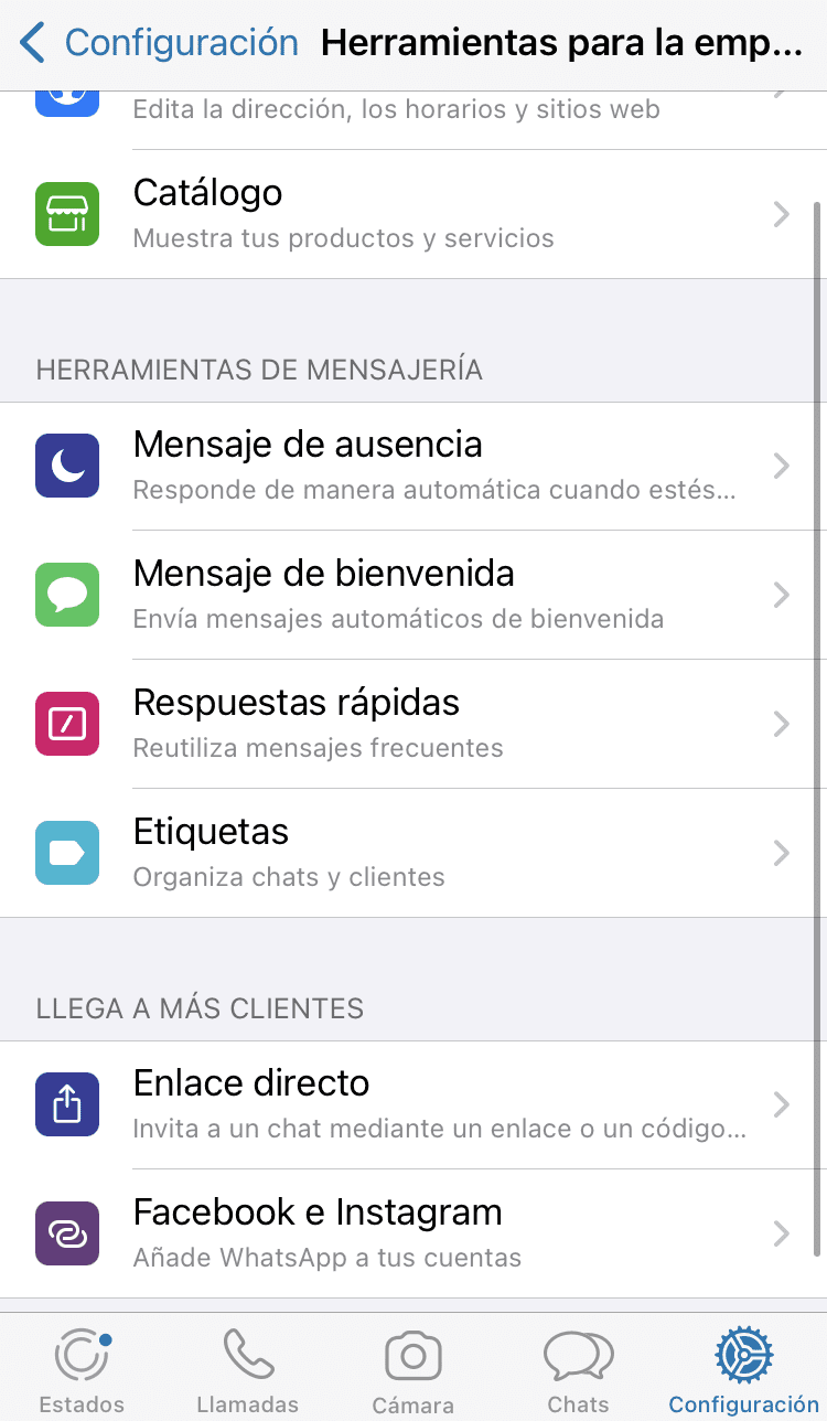 • El mensaje de ausencia responde automáticamente a los clientes que te escriban en un periodo que tengas marcado como no disponible.