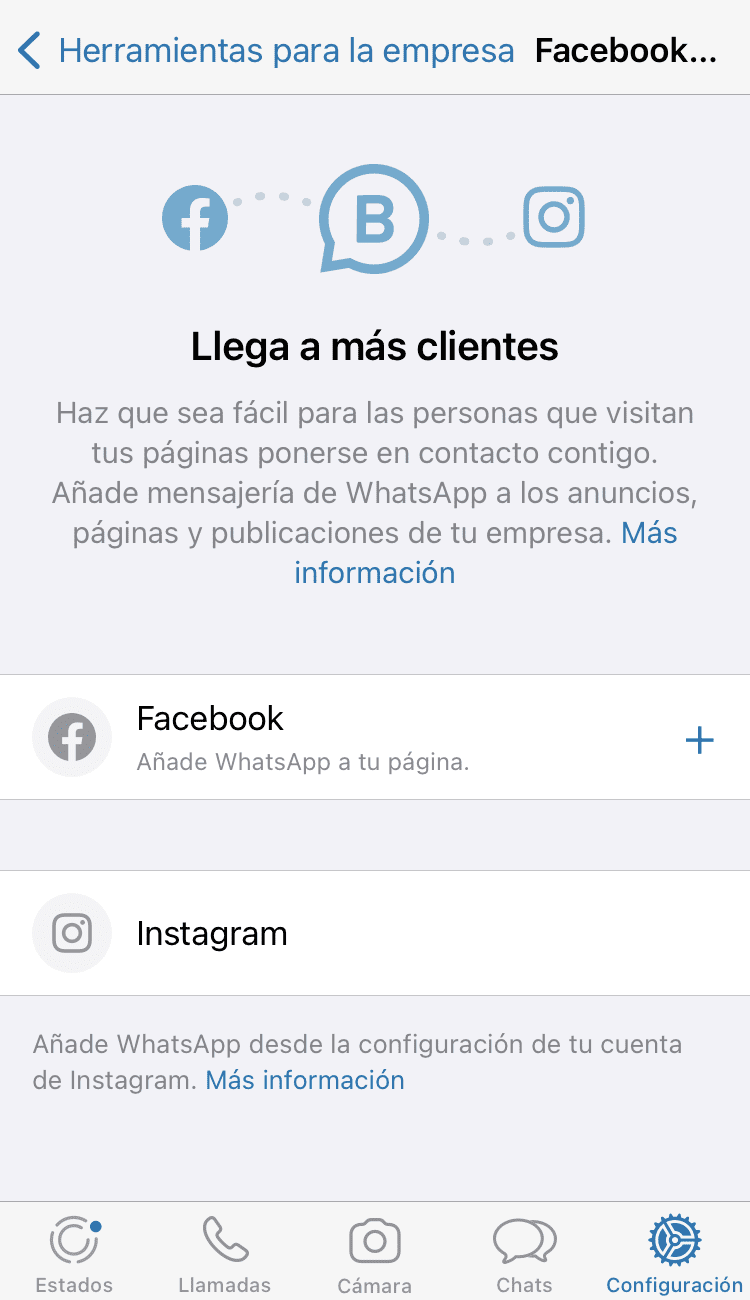 WhatsApp es la aplicación de mensajería más popular a nivel funcional con más de 1.500M de usuarios en todo el mundo. Además de la aplicación habitual, existe WhatsApp Business una aplicación específica para que los negocios se comuniquen con sus clientes.